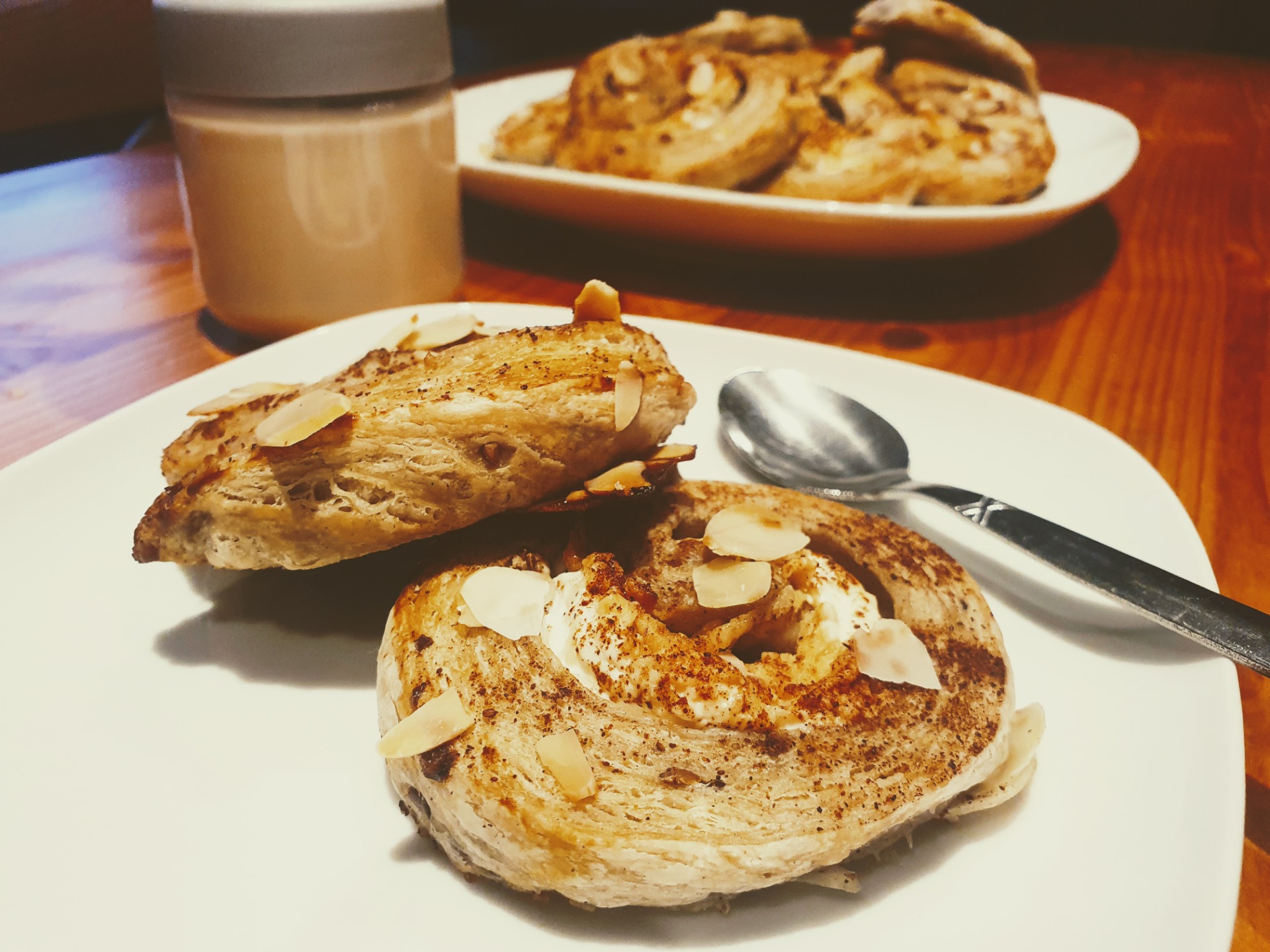 2ks listoví šneci s tvarohem, strouhanými jablky, medem a skořicí