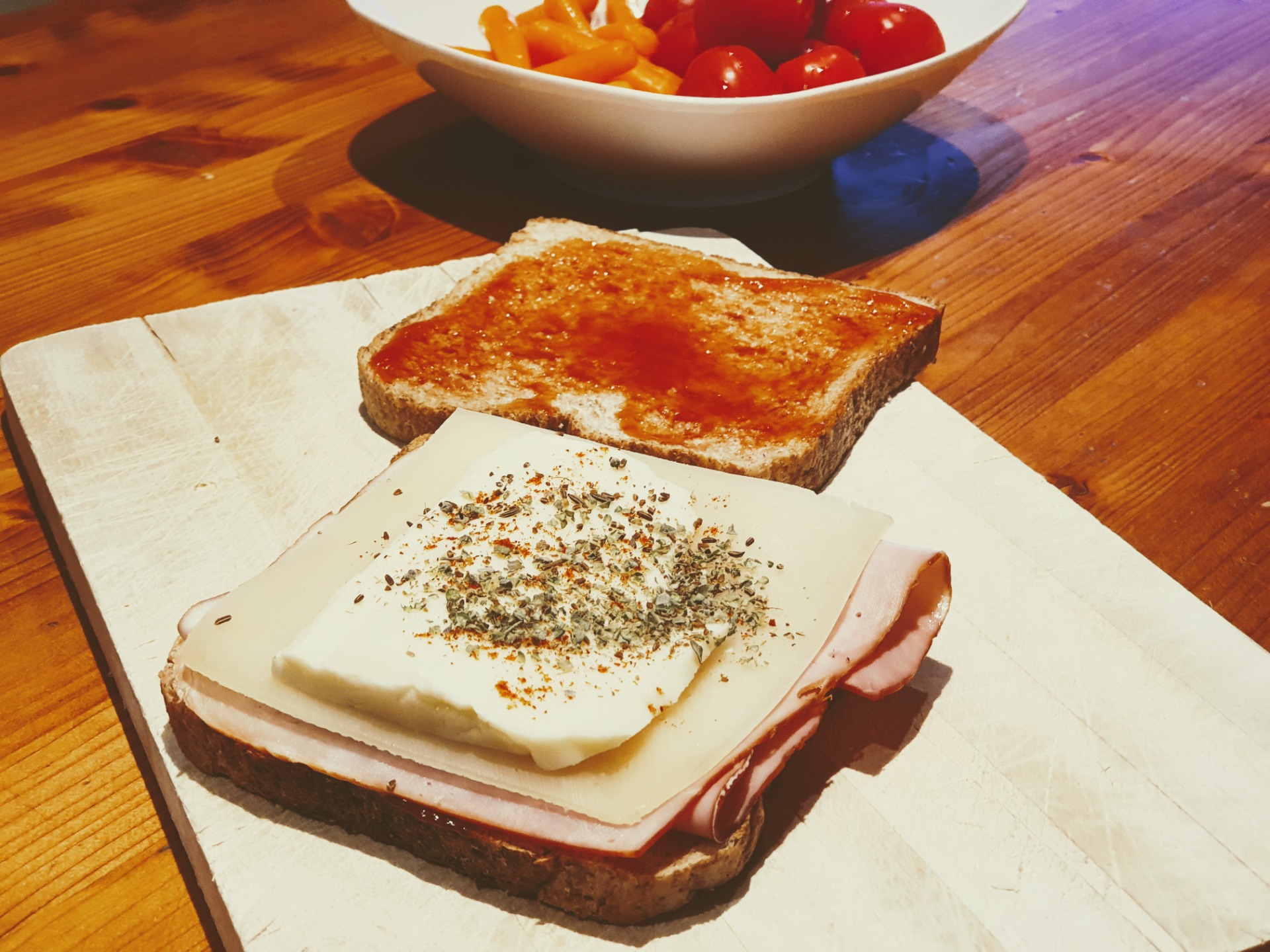 Celozrnný zapečený sandwich s burgunskou šunkou a allami sýrem